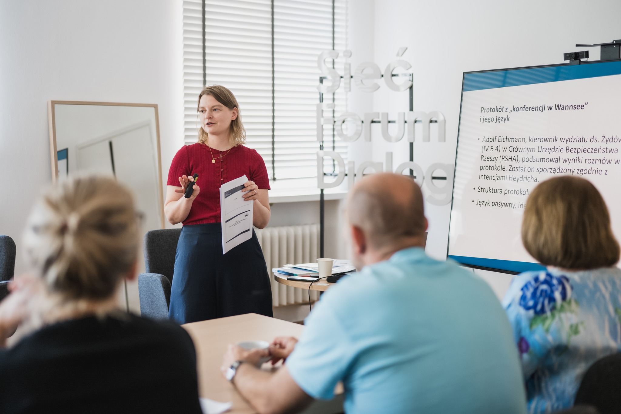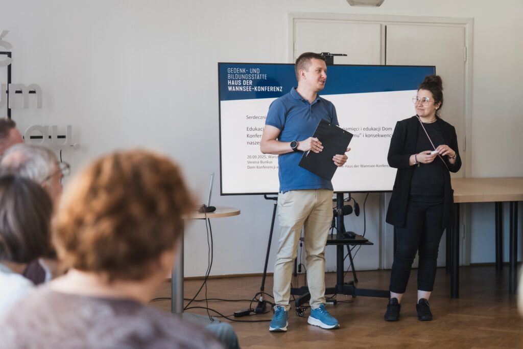 The program consisted of two thematic blocks. The first served as an introduction to the historical and educational context. In the following stage, participants worked in groups to analyze the mechanisms of hatred, using the minutes of the 1942 Wannsee Conference as a starting point.