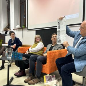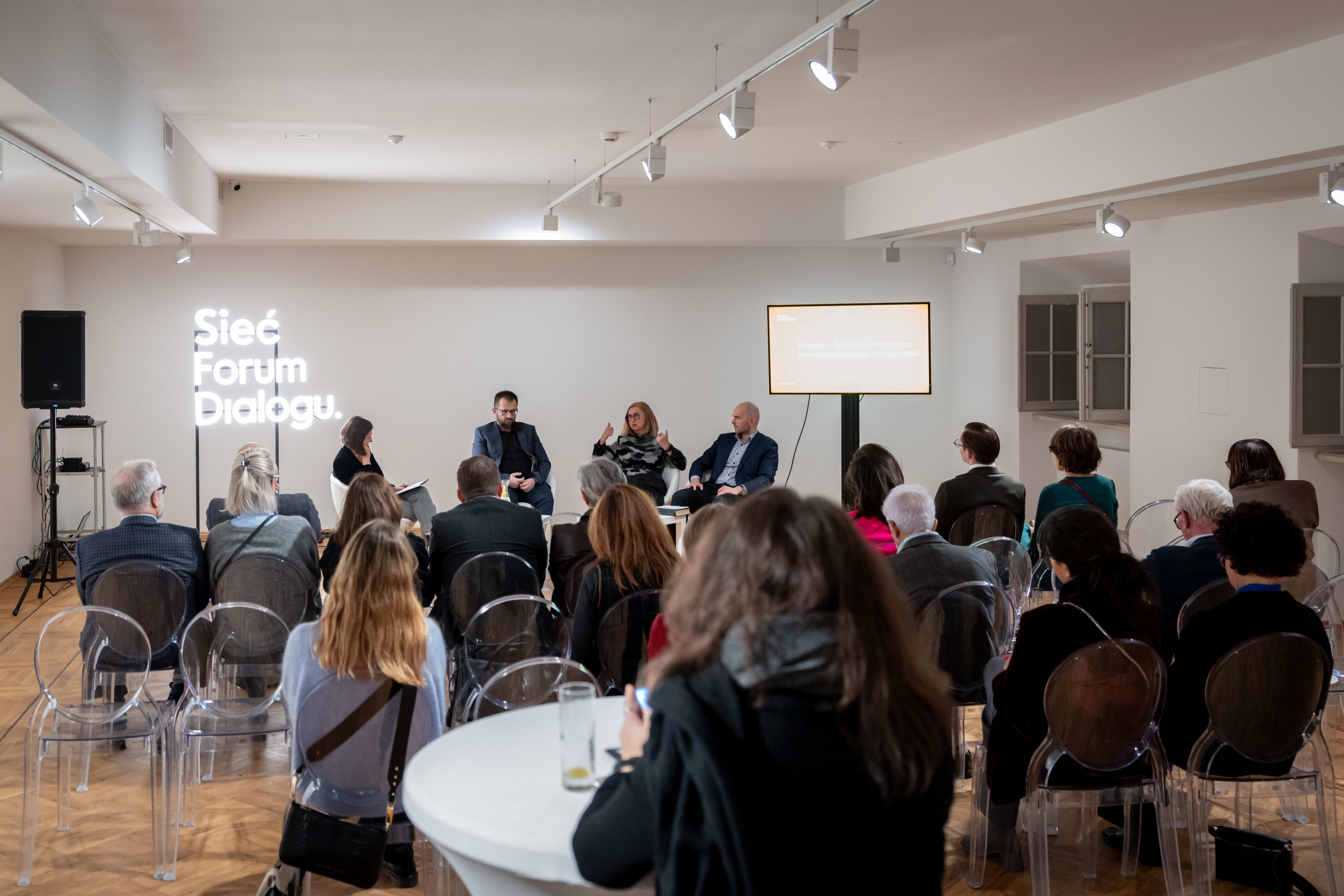 Working with young people in Żyrardów, discovering family histories in Kałuszyn, and documenting the fate of the Wołomin community – these were the main themes of a promotional meeting held on December 15 in Warsaw. The event, organized by Forum for Dialogue, provided an opportunity for Network members Bożena Gąsiorowska, Przemysław Jaczewski, and Piotr Szulc to exchange their experiences.